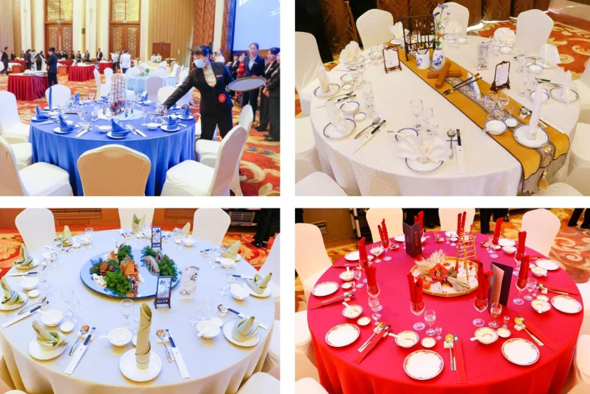 餐廳服務(wù)參賽選手面帶微笑、步履輕盈,一舉一動(dòng)間迸發(fā)出規(guī)范、標(biāo)準(zhǔn)、優(yōu)雅、自信,輕輕一拋、準(zhǔn)確無誤地將臺(tái)布十字居中地鋪在餐桌上,又從主人位開始拉椅定位,麻利地將碗、碟、盤、勺、筷架、筷子、三套杯等一整套光潔的餐具依序擺開,整個(gè)桌面呈現(xiàn)出層次分明、中心對(duì)稱的擺臺(tái)造型;擺放好餐具后,參賽選手旋即拿起了一塊平淡無奇的餐巾,竟能折出帆船、四葉草、一帆風(fēng)順等多種花型,頓時(shí)使擺放整齊美觀的餐具增添了藝術(shù)美感。
