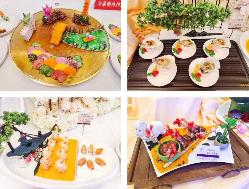 熱菜制作、冷菜制作、精細(xì)刀工的參賽選手各展其能,精益求精,紛紛拿出看家的本領(lǐng)、亮出練就的絕活,成排灶臺(tái)上不時(shí)翻起火紅的浪花,嫻熟的刀法刻畫出美妙絢麗的山水畫卷,貌似很平常不過的每一道熱菜、每一盤冷菜、每一個(gè)刀法卻蘊(yùn)含著細(xì)致入微、精雕細(xì)琢、至真至誠(chéng),用靈巧的雙手和完美的創(chuàng)意展示出琳瑯滿目的美味佳肴,用色、香、味、形一應(yīng)俱全征服了賽場(chǎng)的所有人,更為美食愛好者帶來了一場(chǎng)視覺與味蕾的盛宴!