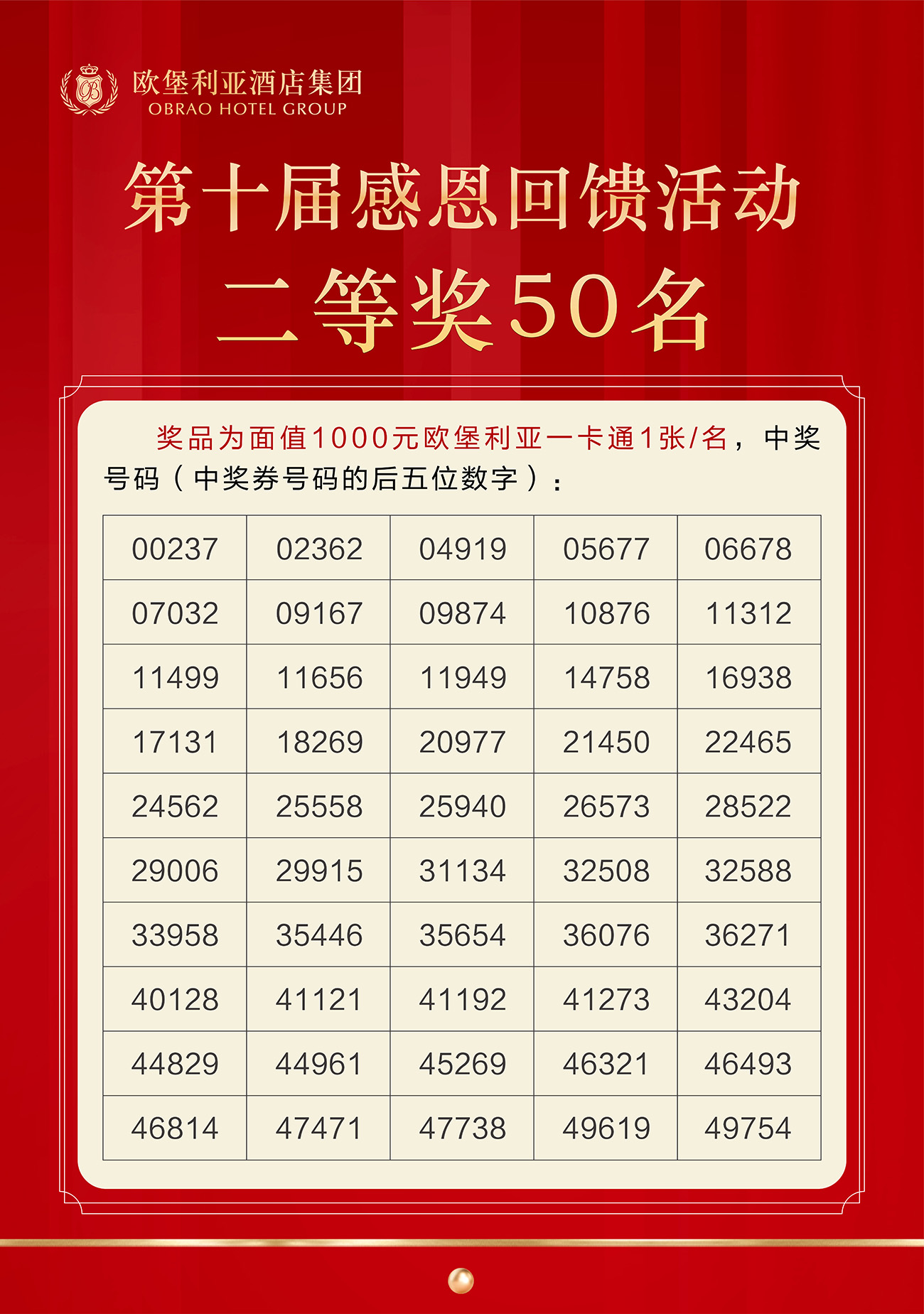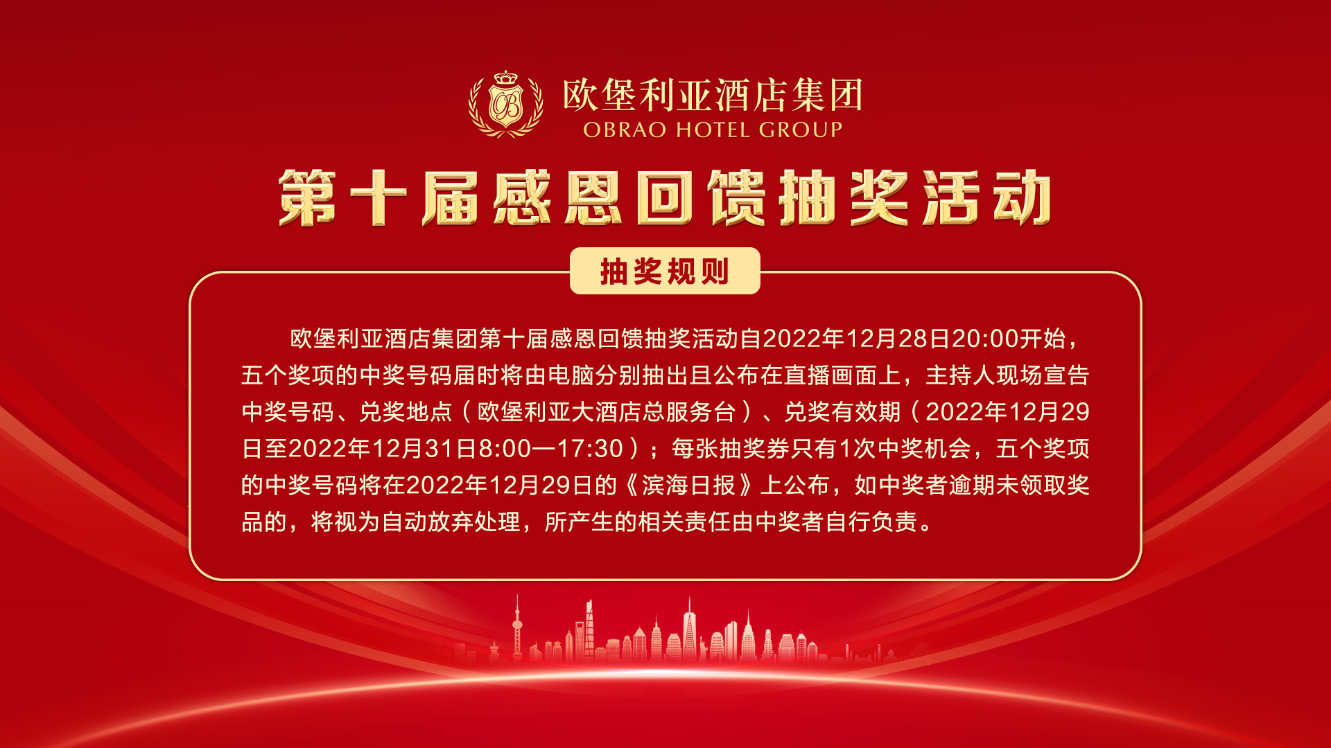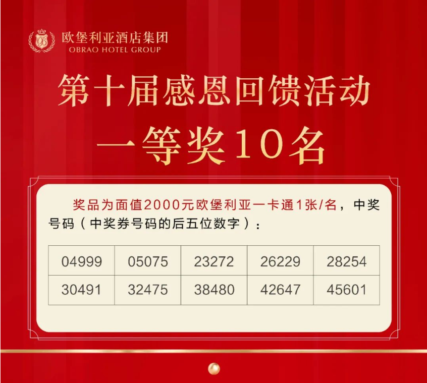 ▲歐堡利亞酒店集團第十屆感恩回饋活動抽獎規(guī)則