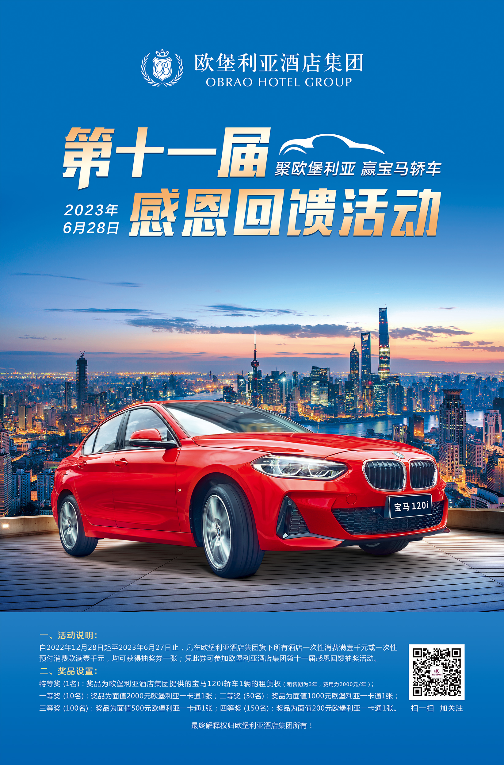 根據(jù)抽獎規(guī)則,凡在2022年6月28日至2022年12月27日期間,在歐堡利亞酒店集團旗下的所有酒店一次消費滿1000元或一次預付消費滿1000元的客戶,均可獲贈歐堡利亞酒店集團第十屆感恩回饋活動抽獎券1張并參加線上直播抽獎。