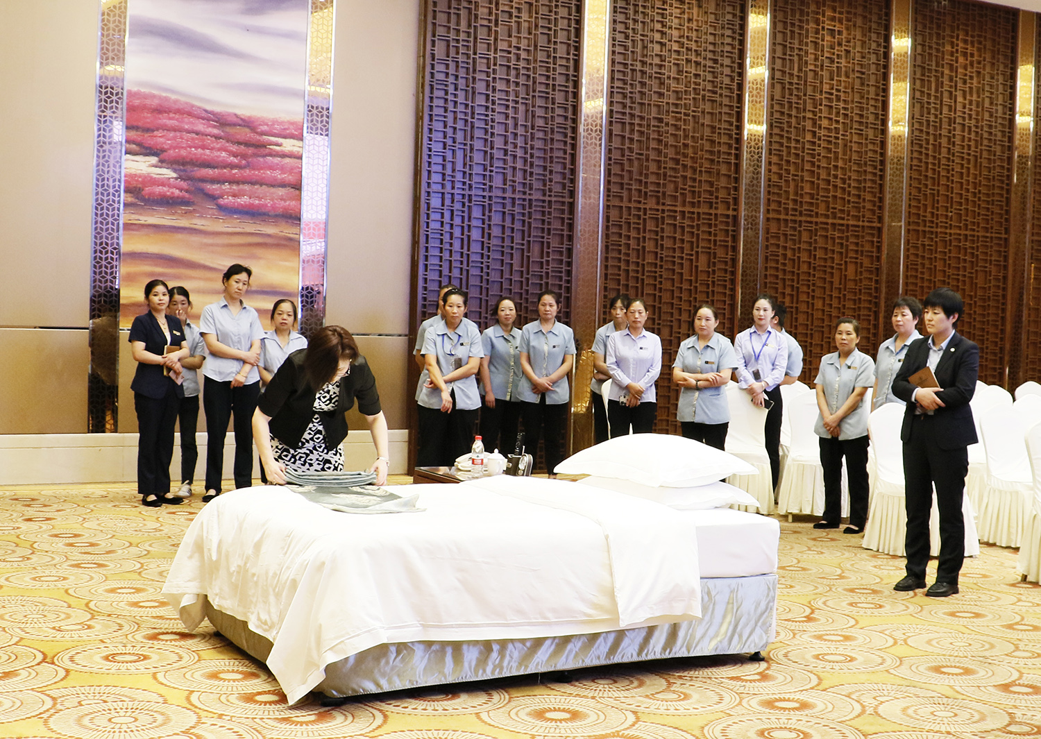 ▲客房服務實操培訓現(xiàn)場