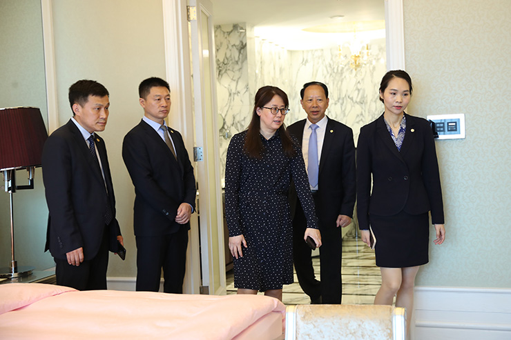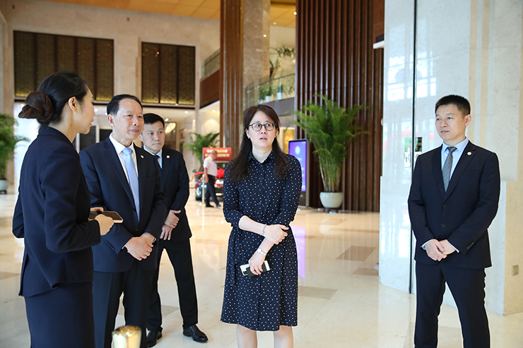 為使歐堡利亞大酒店再次順利通過國家五星級飯店評定性復(fù)核驗收,切實加快五星級飯店評定性復(fù)核工作的進程,2024年7月2日,江蘇省文旅廳二級調(diào)研員黃樺對歐堡利亞大酒店的五星級飯店評定性復(fù)核準備工作作了精心指導(dǎo),歐堡利亞酒店集團總經(jīng)理、歐堡利亞大酒店董事長鄧棟、歐堡利亞大酒店總經(jīng)理胡也華及相關(guān)同志陪同檢查。