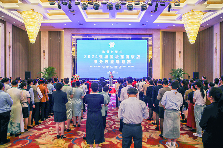 專業(yè)技能促服務(wù)提升,實(shí)景操作競賽場風(fēng)流。為大力弘揚(yáng)新時(shí)代工匠精神,全面加強(qiáng)星級(jí)旅游飯店人才隊(duì)伍建設(shè),不斷擴(kuò)大星級(jí)旅游飯店廣大員工服務(wù)技能的示范效應(yīng),切實(shí)提升星級(jí)旅游飯店的服務(wù)品質(zhì),賡續(xù)打造鹽城市優(yōu)質(zhì)旅游服務(wù)形象,2024年7月2日,由鹽城市文化廣電和旅游局主辦的2024年鹽城星級(jí)旅游飯店服務(wù)選拔賽在歐堡利亞大酒店歐堡廳拉開了帷幕,江蘇省文旅廳二級(jí)調(diào)研員黃樺、濱??h委常委兼縣政府副縣長仇飛、鹽城市文廣旅局副局長侯德志及市場管理處處長于將、濱??h文廣旅局局長張海峰、歐堡利亞酒店集團(tuán)總經(jīng)理/歐堡利亞大酒店董事長鄧棟、濱??h文廣旅局副局長李臻球、市縣文廣旅局相關(guān)處(科)室工作人員、四個(gè)比賽項(xiàng)目的8位評(píng)委、來自全市各縣(市、區(qū))代表隊(duì)領(lǐng)隊(duì)、19家星級(jí)旅游飯店的74名參賽選手及觀摩人員共計(jì)180多人蒞臨了選拔賽現(xiàn)場,歐堡利亞大酒店、歐堡利亞北辰酒店分別有7名、6名選手參加了此次選拔賽。