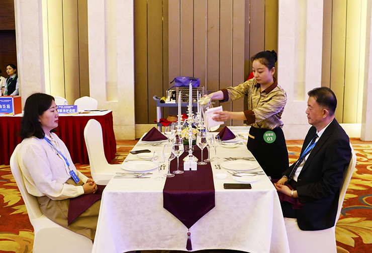 ▲西餐服務(wù)實(shí)操比賽現(xiàn)場四個(gè)競賽項(xiàng)目在歐堡利亞大酒店歐堡廳不同區(qū)域以實(shí)境實(shí)操方式同時(shí)開展,參賽選手在比賽過程中沉著冷靜、一絲不茍,有條不紊地專注于比賽項(xiàng)目的每一道操作,每一處細(xì)節(jié)都成為評(píng)委的打分考核點(diǎn),以熟練的實(shí)操技能征服了在場的所有評(píng)委和觀摩人員。