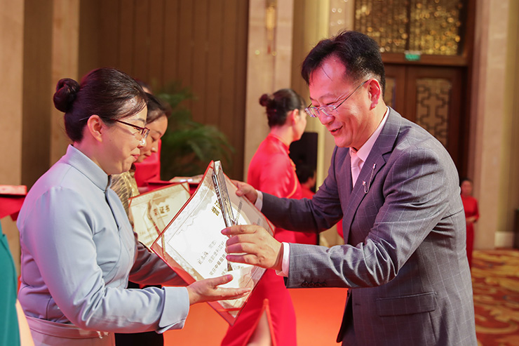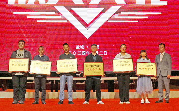 ▲江蘇省文旅廳二級(jí)調(diào)研員黃樺、鹽城市文旅局副局長侯德志為榮獲“一等獎(jiǎng)”的4名參賽選手頒獎(jiǎng)