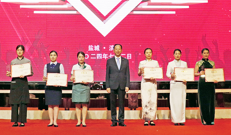 為榮獲“優(yōu)秀組織獎(jiǎng)”的6個(gè)縣(市、區(qū))代表隊(duì)領(lǐng)隊(duì)頒獎(jiǎng)一分耕耘一分收獲,成功青睞有準(zhǔn)備者。經(jīng)過緊張激烈的角逐比拼后,各縣(市、區(qū))代表隊(duì)競賽決出了6個(gè)“優(yōu)秀組織獎(jiǎng)”,74名參賽選手中有24人分別獲得了四個(gè)競賽項(xiàng)目的“一等獎(jiǎng)”、“二等獎(jiǎng)”、“三等獎(jiǎng)”,其中歐堡利亞大酒店陳俊、辛可可、王珊珊、錢海燕、沈玉靜分別獲得了“客房服務(wù)一等獎(jiǎng)”、“前廳服務(wù)二等獎(jiǎng)”、“西餐服務(wù)二等獎(jiǎng)”、“客房服務(wù)三等獎(jiǎng)”、“前廳服務(wù)三等獎(jiǎng)”,歐堡利亞北辰酒店王夢(mèng)蝶、張麗麗、周竹蘭分別獲得了“前廳服務(wù)二等獎(jiǎng)”、“前廳服務(wù)三等獎(jiǎng)”、“客房服務(wù)三等獎(jiǎng)”,充分展示了歐堡利亞酒店人愛崗敬業(yè)的精神風(fēng)貌和嫻熟精湛的服務(wù)技能。▲2024鹽城星級(jí)旅游飯店服務(wù)技能選拔賽頒獎(jiǎng)儀式星級(jí)旅游飯店是展示一個(gè)城市旅游服務(wù)的重要一環(huán),決定著一個(gè)城市服務(wù)質(zhì)量的好壞,從業(yè)人員的職業(yè)素養(yǎng)是展示星級(jí)旅游飯店形象的最有力代言。2024鹽城星級(jí)旅游飯店服務(wù)技能選拔賽歷時(shí)570分鐘,既是鹽城市文廣旅局對(duì)全市星級(jí)旅游飯店服務(wù)技能人才隊(duì)伍水平的一次大檢閱,又是引導(dǎo)鹽城市星級(jí)旅游飯店從業(yè)人員學(xué)知識(shí)、學(xué)技術(shù)、練技能、強(qiáng)服務(wù)的一次大動(dòng)員,這不僅為鹽城市星級(jí)旅游飯店從業(yè)人員構(gòu)建了各顯神通、展示風(fēng)采、交流互鑒、鍛煉提升的良好平臺(tái),還增強(qiáng)了鹽城市星級(jí)旅游飯店從業(yè)人員的技能水平、服務(wù)質(zhì)量,更推動(dòng)了鹽城市文化旅游事業(yè)和飯店產(chǎn)業(yè)高質(zhì)量發(fā)展。