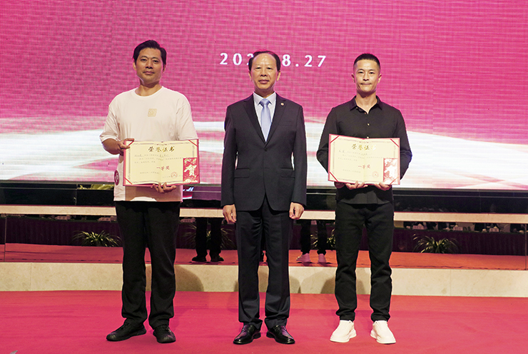 ▲歐堡利亞酒店集團(tuán)總經(jīng)理鄧棟為榮膺一等獎(jiǎng)的2名參賽選手頒獎(jiǎng)