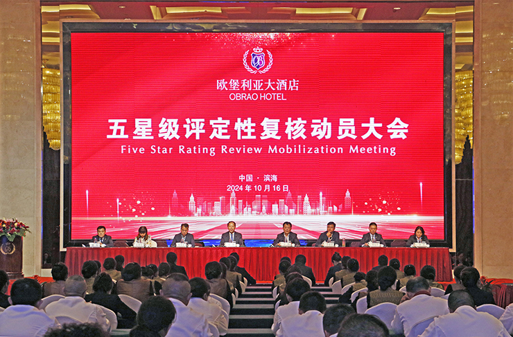 為廣泛動(dòng)員全體員工以最飽滿的工作激情、最佳的精神狀態(tài),切實(shí)做好五星復(fù)核迎檢備查工作,致力以零缺陷的硬件、零失誤的服務(wù),堅(jiān)決打贏五星復(fù)核攻堅(jiān)戰(zhàn),確保五星級(jí)旅游飯店評(píng)定性復(fù)核工作順利通過(guò),2024年10月16日,歐堡利亞大酒店在歐堡廳隆重召開了“五星級(jí)評(píng)定性復(fù)核動(dòng)員大會(huì)”,鹽城市文廣旅局市場(chǎng)管理處處長(zhǎng)于將及星級(jí)酒店負(fù)責(zé)人杭榮春、濱海縣文廣旅局副局長(zhǎng)李臻球及市場(chǎng)管理科科長(zhǎng)吳慧明出席會(huì)議,歐堡利亞酒店集團(tuán)總經(jīng)理兼歐堡利亞大酒店董事長(zhǎng)鄧棟作了動(dòng)員報(bào)告,歐堡利亞大酒店總經(jīng)理胡也華主持會(huì)議,歐堡利亞大酒店近200名員工參加了此次會(huì)議。