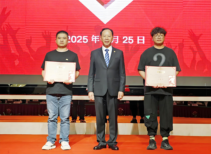 為榮膺一等獎(jiǎng)的2名獲獎(jiǎng)選手頒獎(jiǎng)