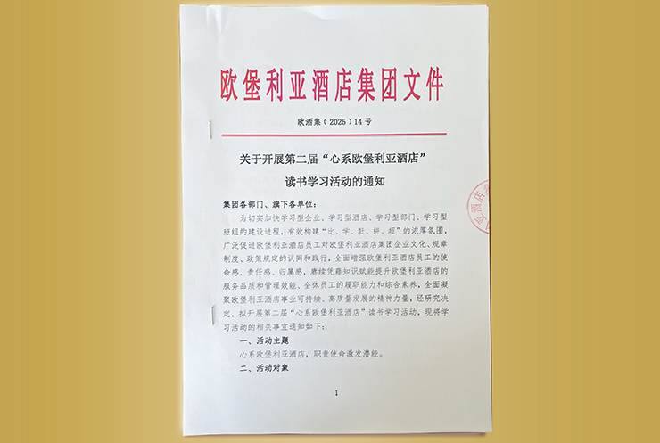 堡利亞酒店集團企業(yè)文化、規(guī)章制度、政策規(guī)定的認同和踐行,全面增強歐堡利亞酒店員工的使命感、責任感、歸屬感,賡續(xù)憑藉知識賦能提升歐堡利亞酒店的服務品質和管理效能、全體員工的履職能力和綜合素養(yǎng),全面凝聚歐堡利亞酒店事業(yè)可持續(xù)、高質量發(fā)展的精神力量,2025年9月25日-9月29日,歐堡利亞酒店集團開展了以“心系歐堡利亞酒店,職責使命激發(fā)潛能”為主題的第二屆“心系歐堡利亞酒店”讀書學習活動,整個活動分為宣傳發(fā)動、組織學習、報名準備、分類考核、閱卷統(tǒng)計五個階段,有效實現(xiàn)了“全員參與、以學促知、以知促行”的活動目標。