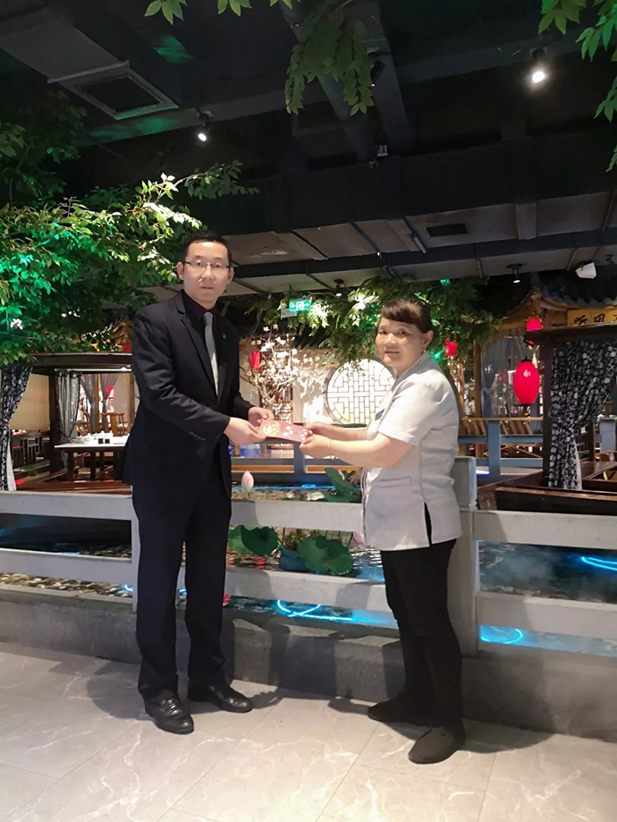 感動是瞬間的,精神是永恒的。為積極踐行社會主義核心價(jià)值觀,大力弘揚(yáng)社會主義優(yōu)良美德,全面推進(jìn)歐堡利亞酒店文化建設(shè),歐堡利亞酒店集團(tuán)鄧棟總經(jīng)理知悉了此事后,立即作出批示,號召全體歐堡利亞酒店人都要身體力行,認(rèn)真學(xué)習(xí)楊海云同志在平凡的崗位上做了凡人善舉、弘揚(yáng)了正能量,勿以善小而不為、勿以惡小而為之,從小事做起、從每一個細(xì)節(jié)做起,用實(shí)際行動展現(xiàn)歐堡利亞酒店人的優(yōu)秀品質(zhì)和精神風(fēng)貌,并委托歐堡利亞江南明灶夏彬彬總經(jīng)理向楊海云頒發(fā)了拾金不昧獎勵金。誠然,拾金不昧已不是什么新鮮的話題,此次楊海云的平凡善舉也不是歐堡利亞酒店良好風(fēng)范的孤例,歐堡利亞酒店每年都會有100多例拾金不昧的優(yōu)秀事跡涌現(xiàn),這與歐堡利亞酒店集團(tuán)長期以來十分重視員工的誠信教育和建立激勵向善機(jī)制是分不開的。誠信是一桿無形的秤,丈量著人的道德底線和人格魅力,小善帶動大愛,大愛感動社會,歐堡利亞酒店集團(tuán)一以貫之地要求每一名員工都要吸取心存“善念”、“大愛”表率之人的精神營養(yǎng),讓拾金不昧精神從自身傳承和發(fā)揚(yáng)下去,為弘揚(yáng)企業(yè)文化、傳遞企業(yè)精神增光添彩!