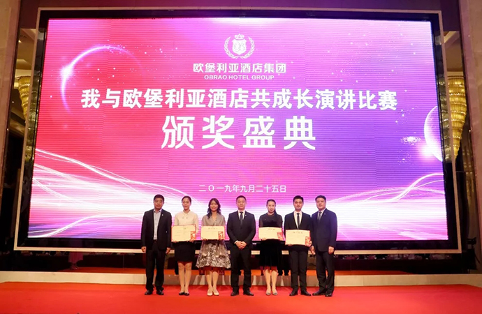 金風(fēng)送爽,丹桂飄香。為熱情謳歌歐堡利亞酒店的發(fā)展歷程,切實(shí)提升員工與企業(yè)同呼吸共命運(yùn)的發(fā)展理念,全面推進(jìn)歐堡利亞酒店文化建設(shè),不斷增強(qiáng)員工的歸屬感和使命感,大力弘揚(yáng)先進(jìn)典型事跡,廣泛挖掘綜合性人才,讓廣大員工充分展示才華風(fēng)采,激發(fā)員工的凝聚力和戰(zhàn)斗力,促進(jìn)歐堡利亞酒店事業(yè)高質(zhì)量發(fā)展,9月25日下午,歐堡利亞酒店集團(tuán)在歐堡利亞大酒店隆重舉辦了“我與歐堡利亞酒店共成長”主題演講比賽。酒店集團(tuán)各部門、各單位的比賽評委、參賽選手、觀摩人員近400人蒞臨了比賽現(xiàn)場。歐堡利亞酒店集團(tuán)總經(jīng)理鄧棟、副總經(jīng)理胡也華、王毅剛、王世江、總經(jīng)理助理曹楓、戴榮鋼出席并擔(dān)任評委,35名參賽選手逐鹿3個(gè)獎(jiǎng)項(xiàng)。