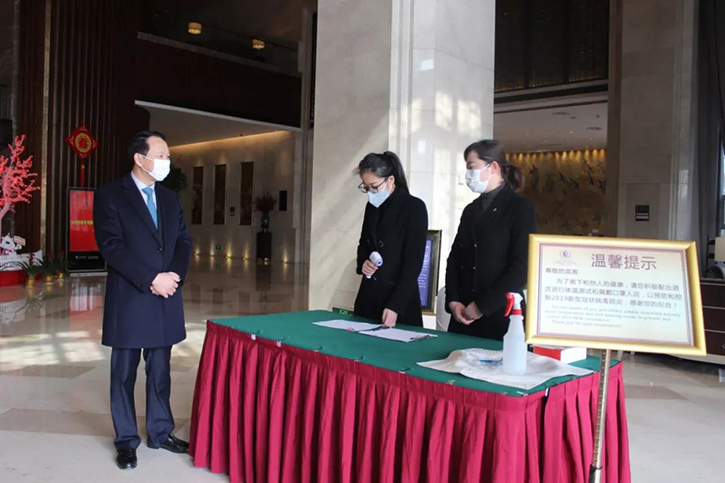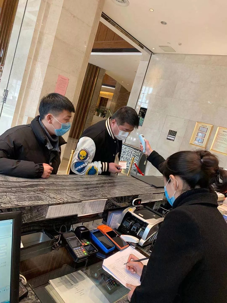要求密切關(guān)注來自湖北、湖南等重疫區(qū)的賓客,如果發(fā)現(xiàn)立即報(bào)告,采取統(tǒng)一集中安置;備齊感應(yīng)體溫計(jì)、一次性口罩,及時(shí)為賓客提供需求服務(wù),并在每天早晚為所有入住酒店賓客各測(cè)一次體溫,發(fā)現(xiàn)異常情況立即報(bào)告。