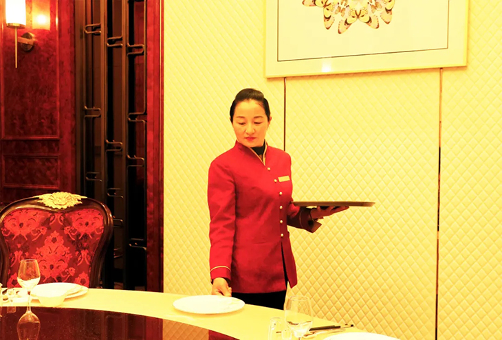 餐飲托盤是在餐前擺臺(tái)、端送茶水、上菜斟酒、收臺(tái)整理等對(duì)客服務(wù)過(guò)程中經(jīng)常被使用到的服務(wù)工具,可減少勞動(dòng)強(qiáng)度、提高服務(wù)效率,也體現(xiàn)出餐飲服務(wù)中文明、安全、衛(wèi)生的一種規(guī)范化操作。正確使用托盤是每一位餐飲服務(wù)員所必須掌握的基本功,也是規(guī)范化服務(wù)和文明操作的基本要求, 更是創(chuàng)造餐飲高質(zhì)量的重要元素。