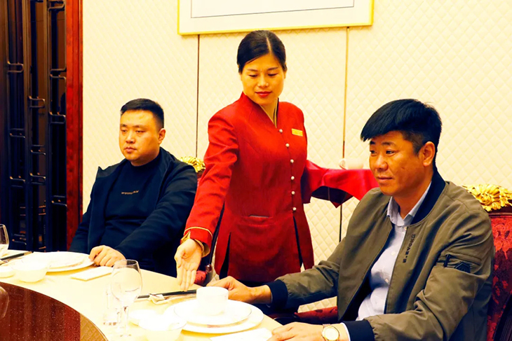 培訓(xùn)過(guò)程中,龔經(jīng)理用真實(shí)生動(dòng)的服務(wù)案例,拋磚引玉地說(shuō)明使用托盤可收到事半功倍之效;用圖文并茂的精彩PPT,深入淺出地講解了托盤的基礎(chǔ)知識(shí)、操作技能、注意事項(xiàng);用標(biāo)準(zhǔn)規(guī)范的現(xiàn)場(chǎng)示范,耐心細(xì)致地糾正了參培人員在實(shí)操練習(xí)中存在動(dòng)作不到位、不規(guī)范的現(xiàn)象。所有參培人員學(xué)習(xí)熱情十分高漲,了解了托盤的種類及用途,在龔經(jīng)理手把手的教授下分組演練,從站姿、手勢(shì)等基本動(dòng)作學(xué)起,每一個(gè)細(xì)節(jié)都有標(biāo)準(zhǔn)規(guī)范和嚴(yán)格要求,大家掌握了托盤的操作程序及動(dòng)作要領(lǐng),收到了熟練操作、運(yùn)用自如的培訓(xùn)效果,真實(shí)的理論加實(shí)踐使餐飲服務(wù)員都深感受益匪淺。