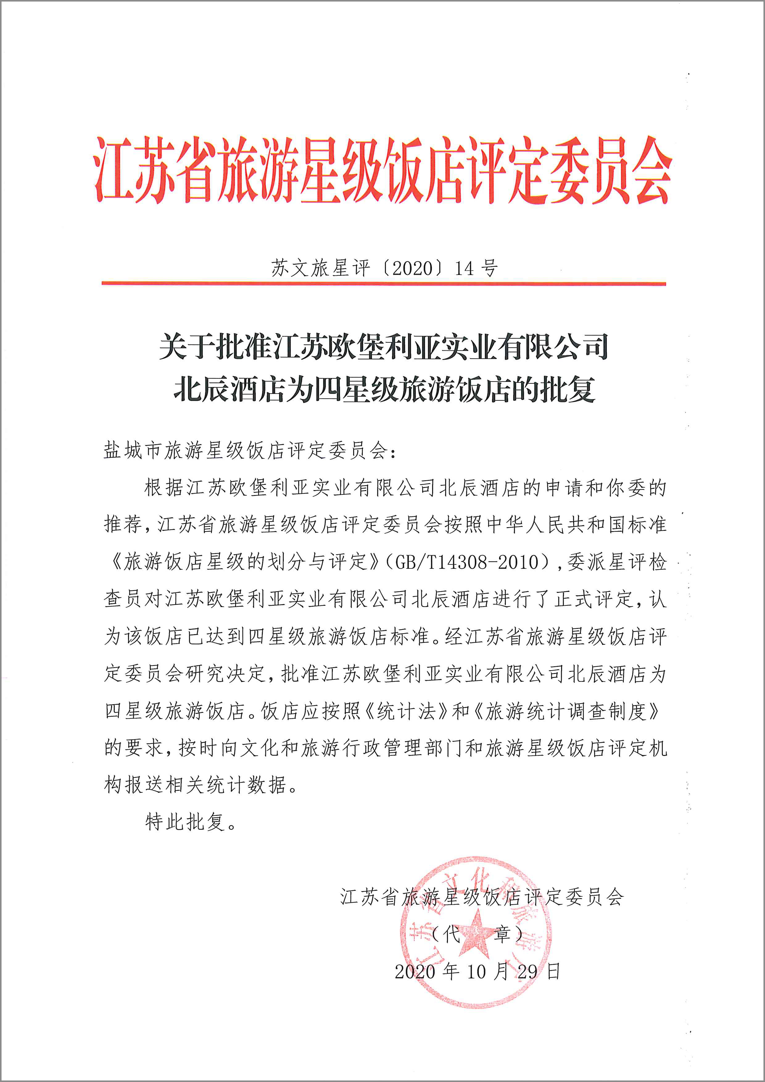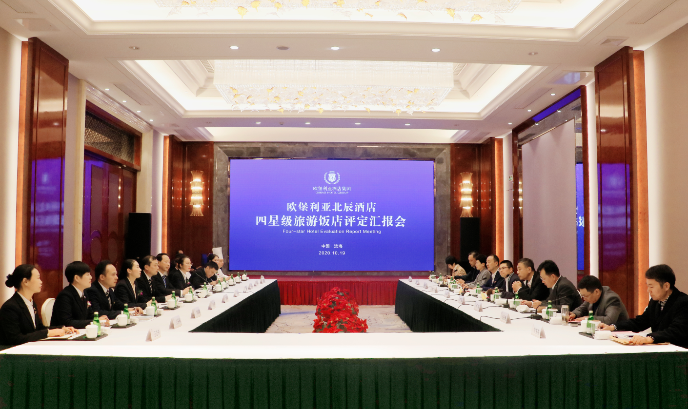 2020年10月19-20日,江蘇省旅游飯店星級評定委員會委派兩位省級星評員,對歐堡利亞北辰酒店開展為期2天的四星級旅游飯店評定性檢查和驗收工作。省市縣文旅廳局相關(guān)領導及星評員、歐堡利亞酒店集團總經(jīng)理鄧棟、北辰酒店店長戴婷婷及部門經(jīng)理以上的管理人員,共同參加了“歐堡利亞北辰酒店四星級旅游飯店評定工作匯報會”。▲四星級旅游飯店評定工作匯報會現(xiàn)場