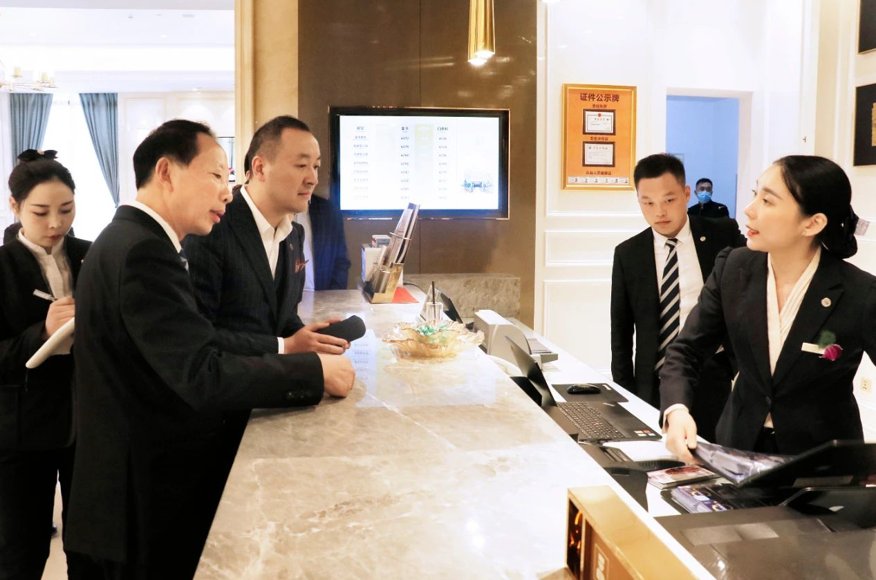 兩位省級星評員通過聽、聞、查、看的方式,著重從歐堡利亞北辰酒店硬件設施、服務程序、功能布局、會議接待、餐飲服務、員工設施、企業(yè)文化等方面作了全面、系統(tǒng)的實地檢查。
