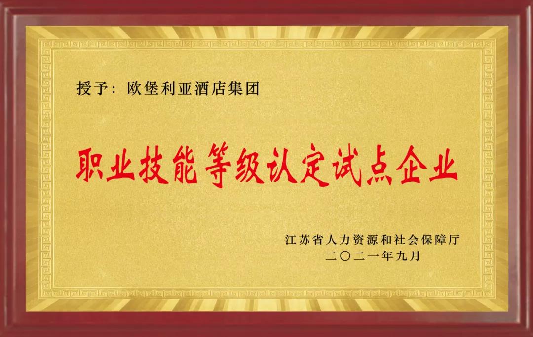 2021年9月29日,歐堡利亞酒店集團(tuán)成功通過江蘇省職業(yè)技能等級認(rèn)定備案,取得企業(yè)職工職業(yè)技能等級認(rèn)定資質(zhì),被江蘇省人力資源和社會保障廳授予“職業(yè)技能等級認(rèn)定試點(diǎn)企業(yè)”,成為濱??h目前唯一一家具備江蘇省職業(yè)技能等級認(rèn)定資質(zhì)的試點(diǎn)單位,這標(biāo)志著歐堡利亞酒店集團(tuán)在技能人才培養(yǎng)工作上迎來了一個新的里程碑,必將為歐堡利亞酒店事業(yè)高質(zhì)量發(fā)展提供強(qiáng)有力的人才支撐。