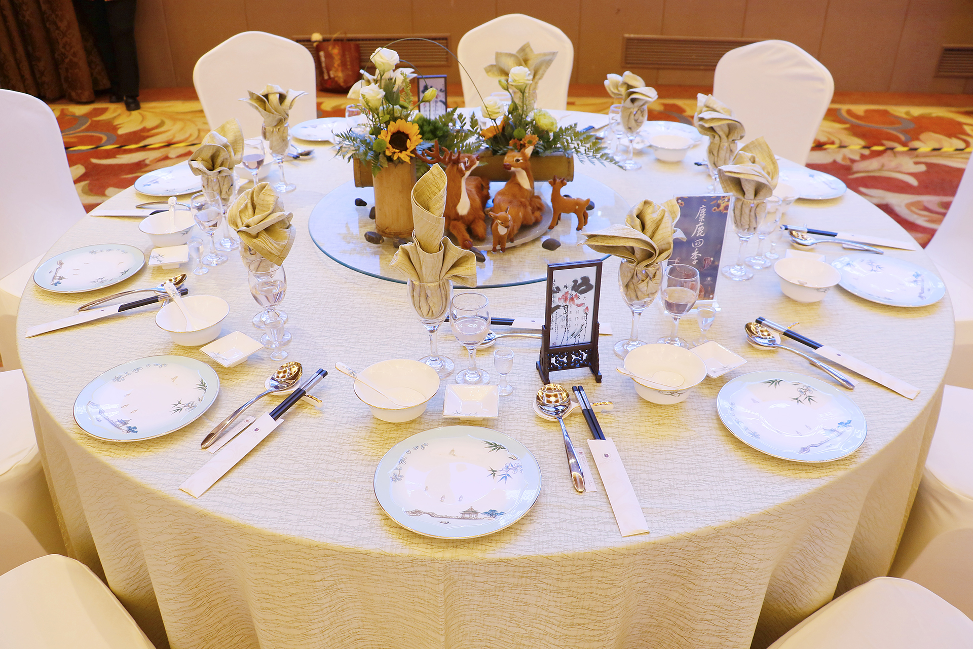餐廳服務(wù)的參賽選手面帶微笑、步履輕盈,輕輕一拋、準(zhǔn)確無(wú)誤地將臺(tái)布鋪在餐桌上,又從主人位開始拉椅定位,麻利地將碗、碟、盤、勺、筷架、筷子、三套杯等一整套光潔的餐具依序擺開,一塊平淡無(wú)奇的餐巾竟能被折出花開富貴、荷塘月色、喜結(jié)良緣等多種花,原本空無(wú)一物的圓餐桌經(jīng)過(guò)參賽選手的創(chuàng)意裝飾頓時(shí)充滿了藝術(shù)美感,一舉一動(dòng)間迸發(fā)出規(guī)范、標(biāo)準(zhǔn)、優(yōu)雅、自信,這便是對(duì)餐廳服務(wù)技能最好的詮釋。